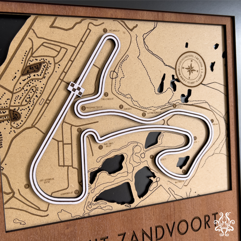 Each Circuit is meticulously crafted using high-quality wood. The layers create a stunning 3D effect, making it a visually striking addition to any space. The laser-cut precision ensures accuracy, bringing the Circuit Zandvoort track to life. Whether displayed in a home, office, or garage, this masterpiece will captivate every motorsport fan.