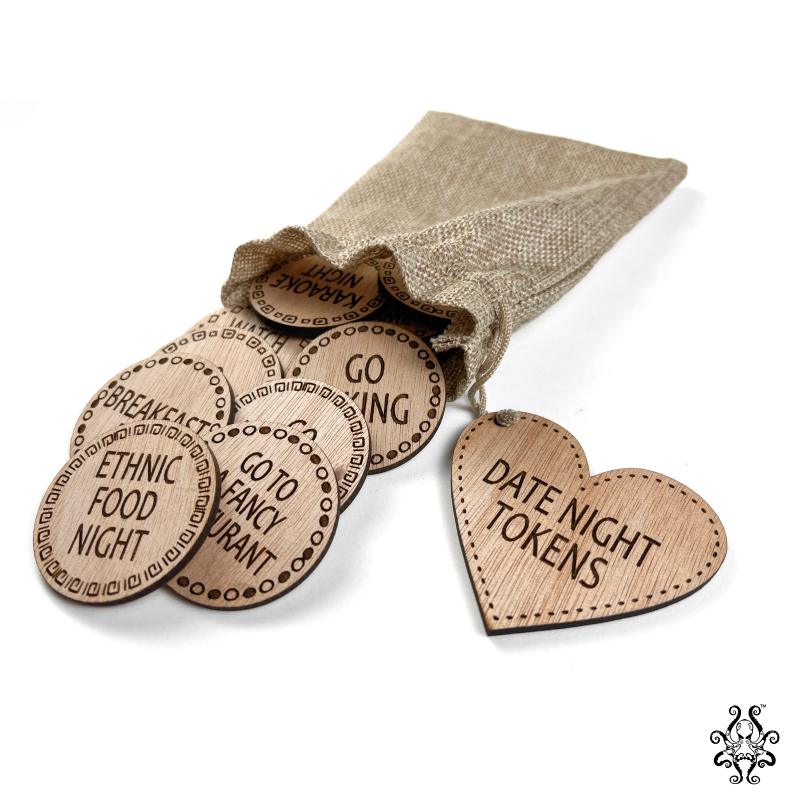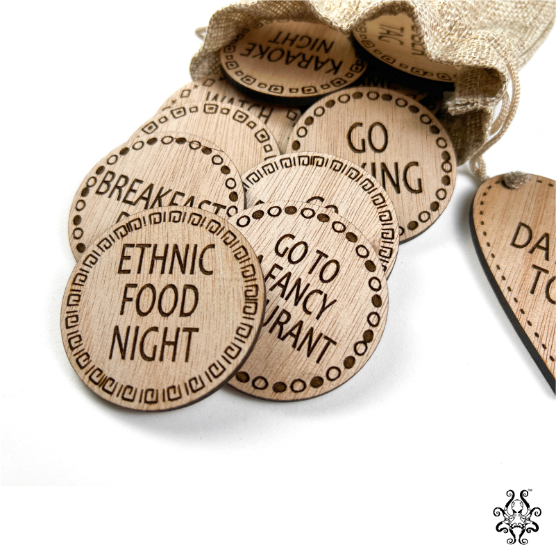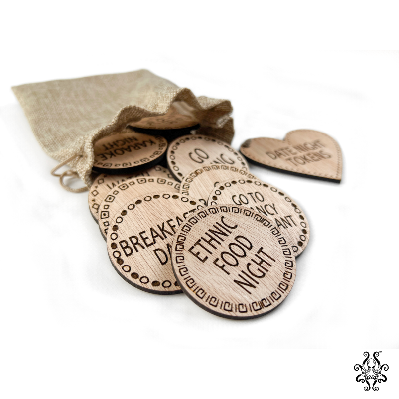 Want to make your Date Night Tokens extra special? We offer personalized tokens! Simply send us an email at info@oktoprint.co.za to personalize your set. Make your game unique and add a personal touch that your partner will cherish.